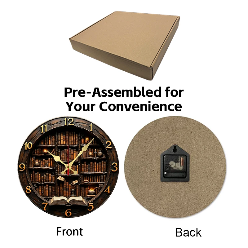 Library Nook Style Wooden Round Silent Hanging Wall Clock, Suitable For Living Room, Office, Study Room,Bedroom, Home Decoration